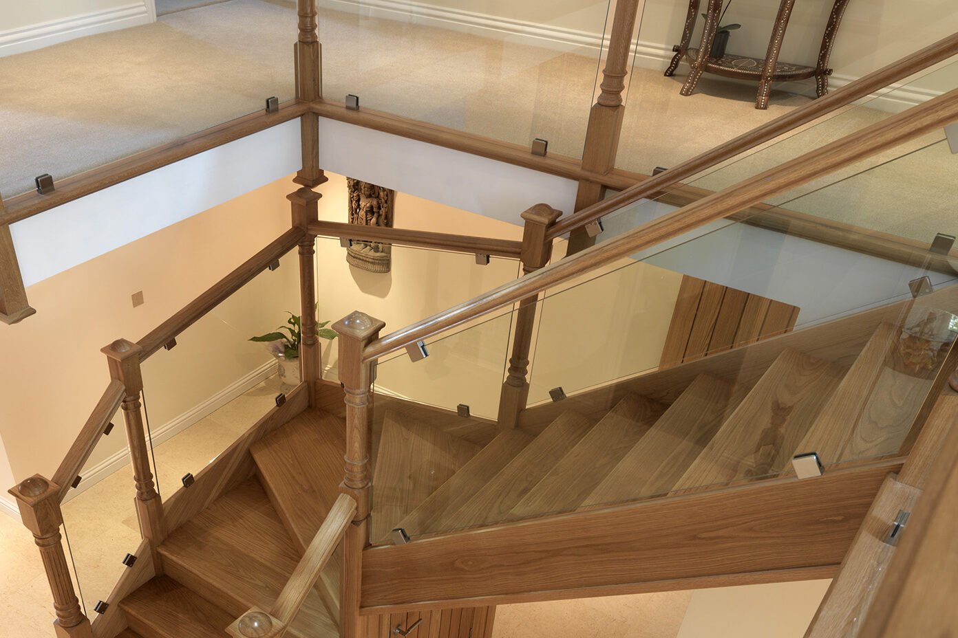 These are fixed between posts.Stair-mounted handrails require careful measurement and alignment with the steps to ensure proper height and spacing. Replacement may be more complex as the handrail is cut on an angle to match the pitch of the stairs. The handrail is fixed to the post by glueing and screwing, (ideally screwing through the groove on the underside of the handrail) or with handrail bolts. Handrails must be securely fitted for strength and safety, allowing for secure fitting of your spindles, glass or metal balustrade.