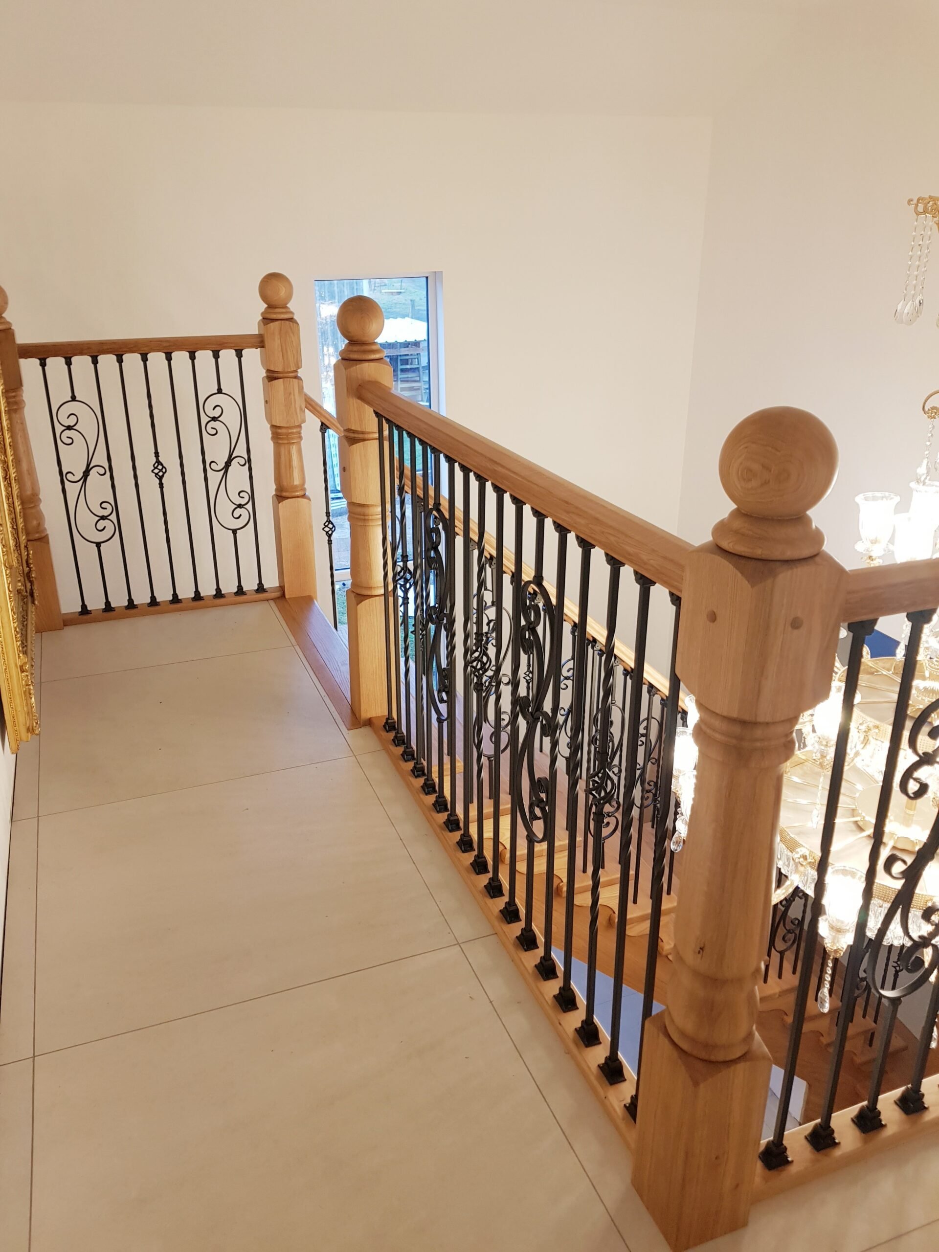 (Photo supplied by customer, treads and installation completed by other, newel posts and balustrades supplied by Stairparts Direct)