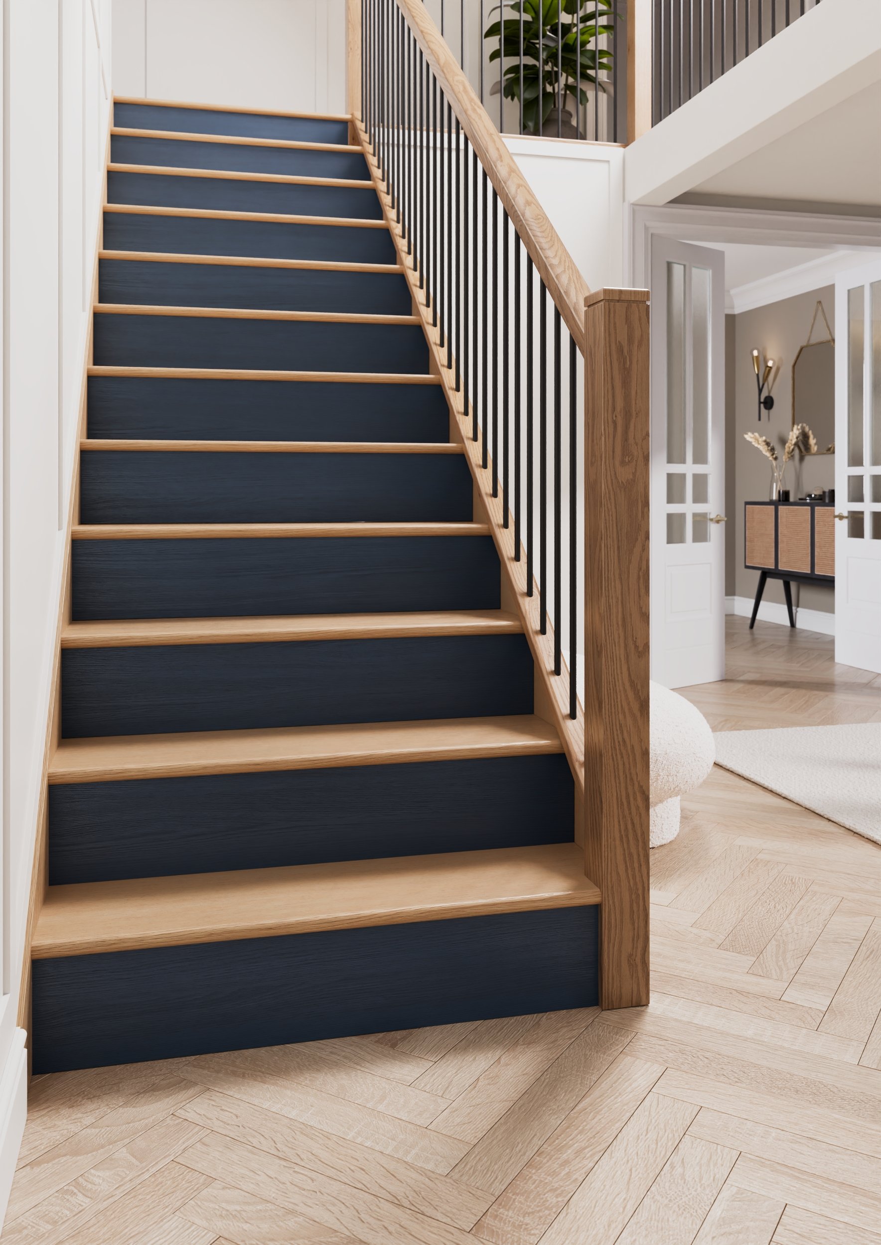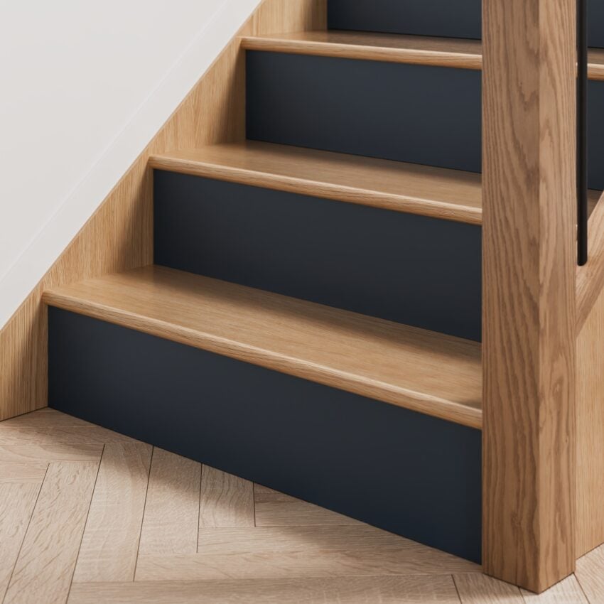 Reversible risers oak faced on one side, white primed for painting on the other.