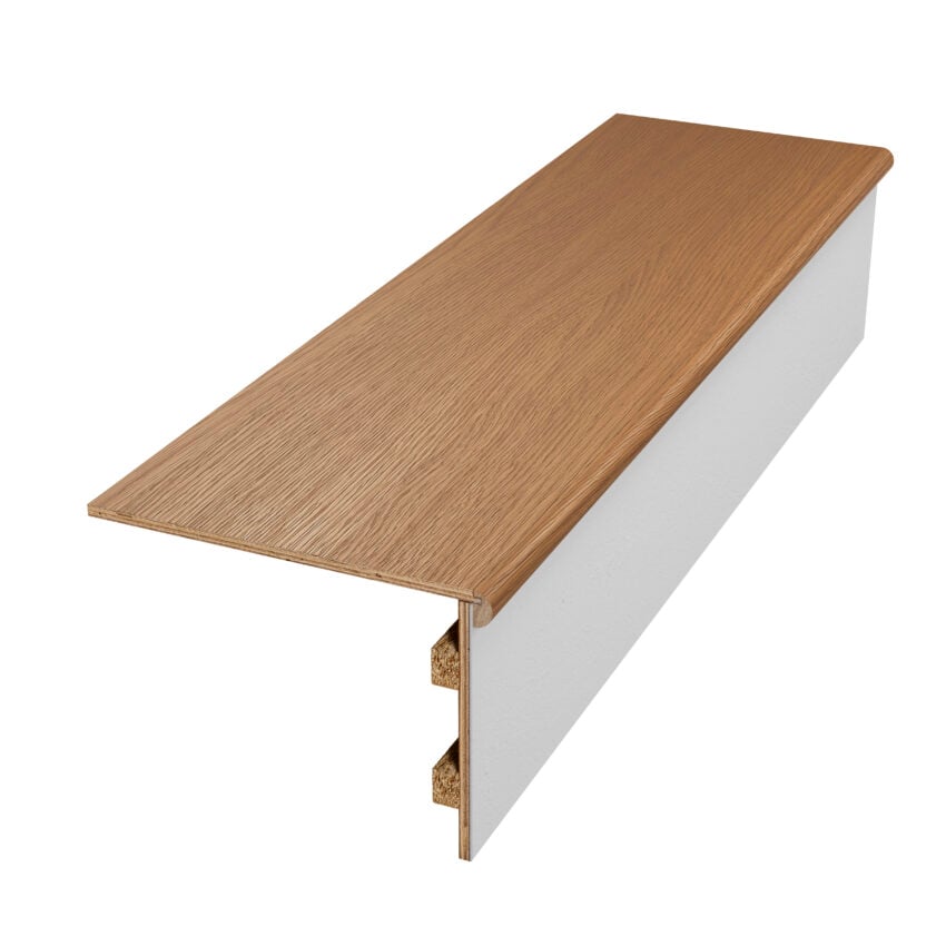 StepUp Tread Riser Cladding with American white oak tread and reversible white oak or primed riser.